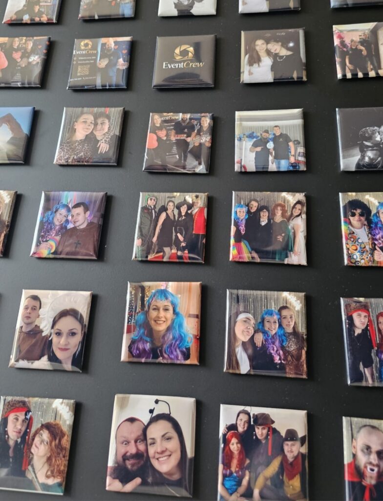 pamiątka dla gości w formie magnesu ze zdjęciem z wydarzenia – bardzo dobrze sprawdzają się również jako podziękowania, np. dla gości weselnych.